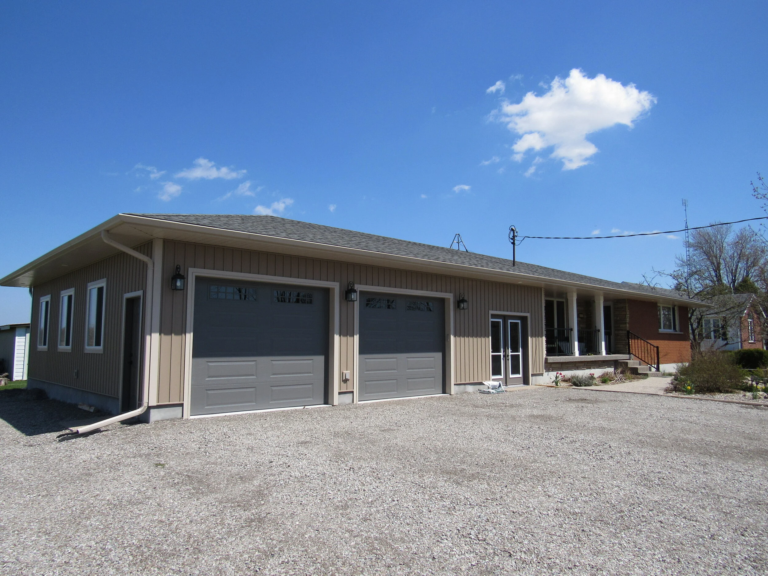 This garage received a serious upgrade in 2018 - a single car garage was demo’d and a brand new 26’ by 33’ double-car took its place. A new roofline for the entire house was created, poured concrete garage floor and new windows and doors to finish the look. The existing concrete porch received a matching new curb in exposed aggregate, plus new railing and post systems were installed.
